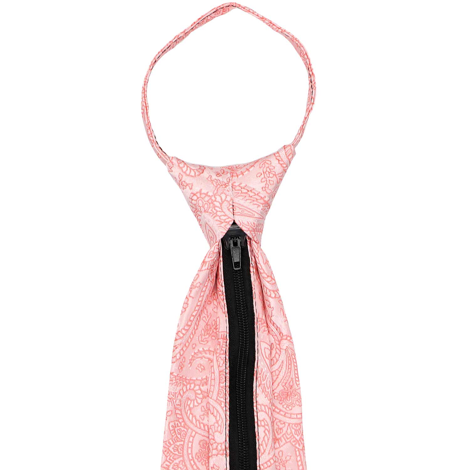 It's never been easier to look good. This pre-tied zipper tie features a stunning paisley pattern in light and dark coral shades. It's perfect for a fuss-free wedding tie or any warm-weather day. You can even coordinate a group with this tie because it comes in other styles, like bow ties, regular neckties and boys' sizes. Be sure to pick up the matching pocket square (sold separately) for those formal occasions.