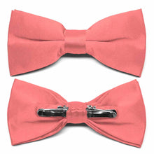 Wear a perfect bow every time with this coral clip-on bow tie. This pre-tied bow tie features a heavyweight clip that discretely attaches to either side of your shirt collar material for a secure fit. One size fits all, regardless of neck size. Has a shiny, satin look. See related products below for a matching cummerbund and pocket square.