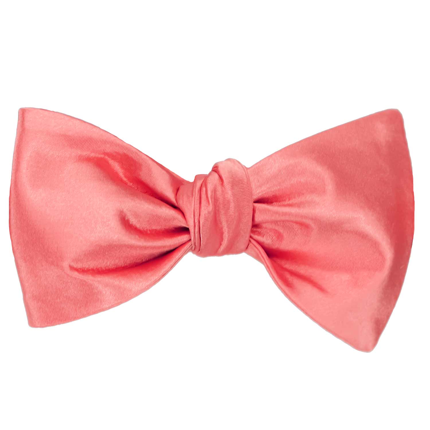 Coral self-tie bow tie, tied