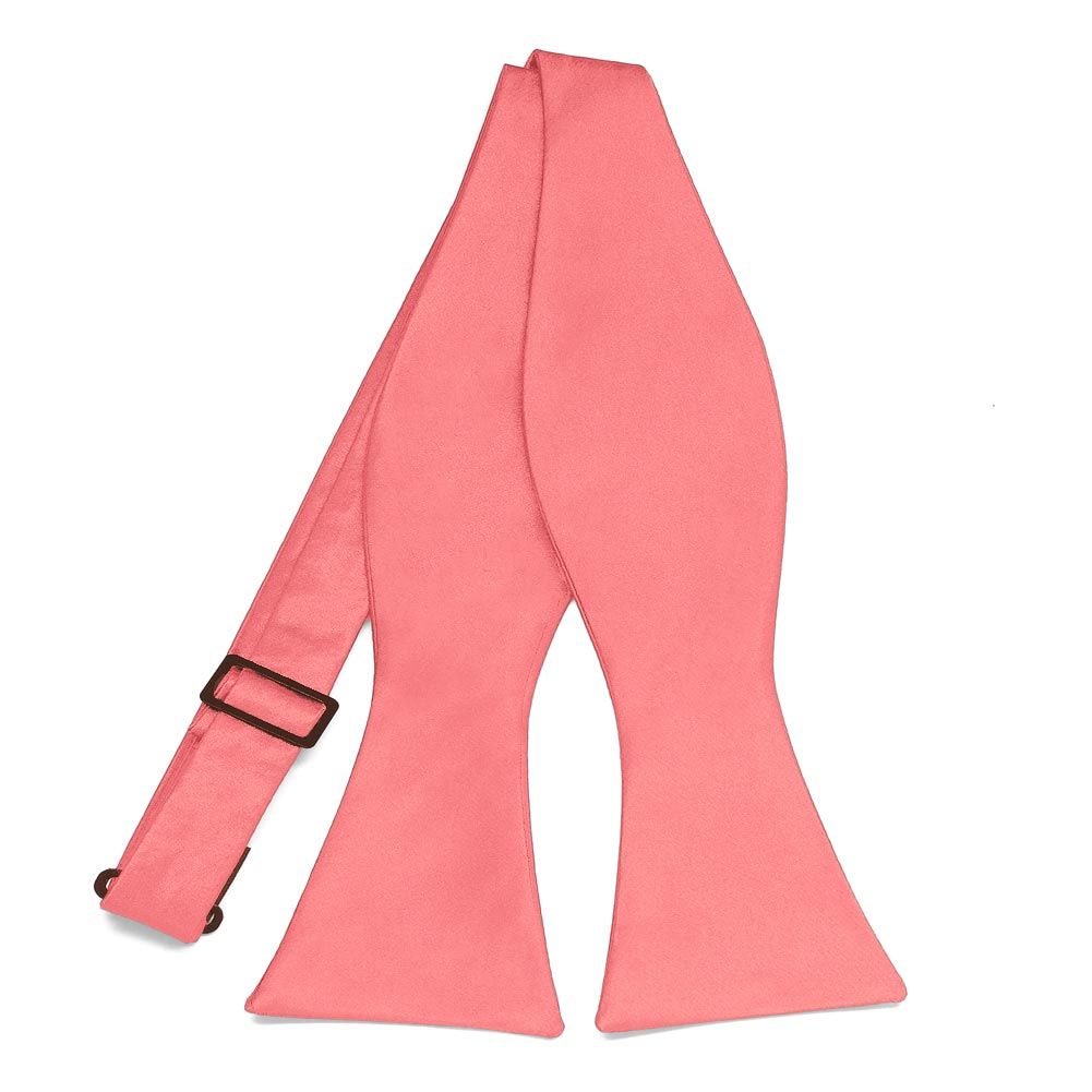 Now you can tie your own bow with this coral self-tie bow tie. Can be worn tied or untied. The adjustable band allows you to fit the bow to your neck size. See related products below for a matching cummerbund and pocket square.