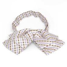 Exclusively ours! A pre-tied, floppy bow tie in a stylish, cream gingham-like plaid design. The band collar adjusts to fit most men and women. Suited for matching women's uniform wear or men's vintage-inspired attire.