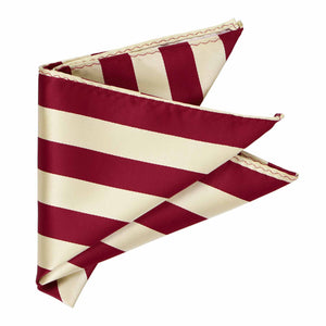 This crimson red and cream striped pocket square measures a large, 12-inches by 12-inches to suit a wide variety of folds. The tightly woven material creates a smooth finish for a sharp look. Matches our crimson red and cream striped ties and bow ties.