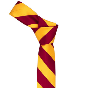 Crimson Red and Golden Yellow Striped Skinny Tie, 2" Width
