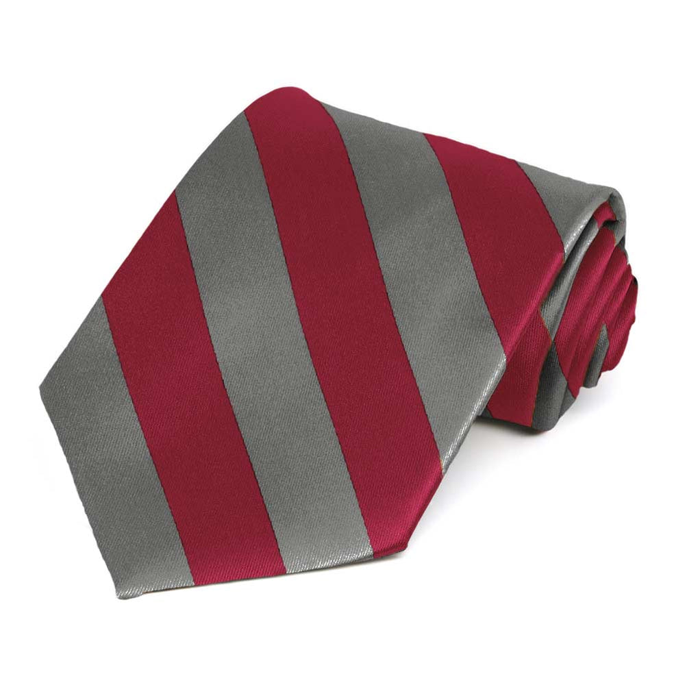 This traditional color combination, crimson red and medium gray, is popular for representing school and sports team colors. Whether you're accepting an award or just supporting your favorite team, this collegiate striped tie is the one! Add the matching pocket square for formal occasions (sold separately). This pattern also comes in a skinny 2-inch width as well as self-tie and pre-tied bow ties. We've made it easy to coordinate your whole team, wedding party or staff!