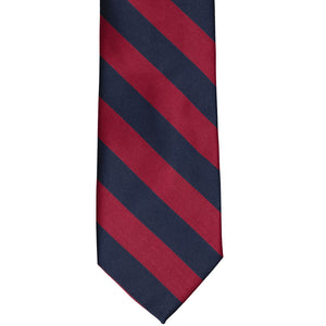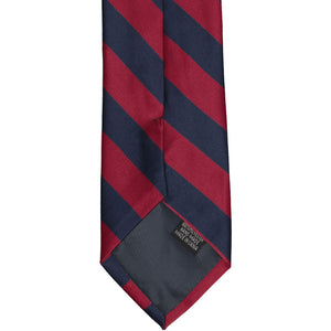 One of our most popular striped tie combos, now in an extra long length for big and/or tall men. This crimson red and navy blue striped tie features a 63-inch length, 6-inches longer than our standard-sized ties. Made from 100% polyester microfiber. Also available in a standard-sized tie.