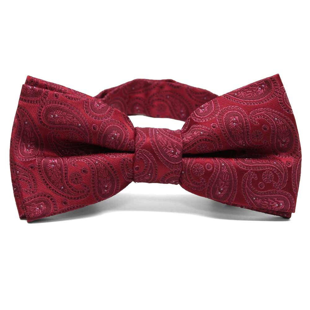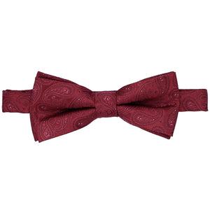 A crimson bow tie with a timeless paisley design is a statement of classic style and versatility. Perfect for transitioning from the office to formal events, this sophisticated accessory is ideal for occasions like interviews, weddings, or an elegant evening out. The rich hue pairs effortlessly with virtually any suit color, offering the ease of a neutral while adding a touch of refined charm. Wherever you wear it, your polished look is sure to turn heads.