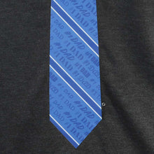 - Tie design is blue and white