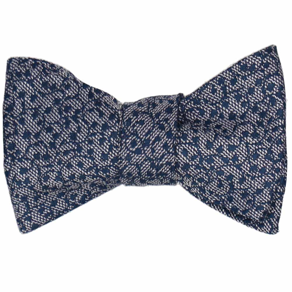 Delicate vines intertwine across this bow tie’s chambray background, creating an elegant look just right for your wedding day. The pattern is small and subtle, but it makes this one more visually interesting than a solid color bow. Thanks to its dark color scheme, you can wear this bow tie with any color of suit. Don’t forget to try it with your favorite denim for casual Friday at the office.