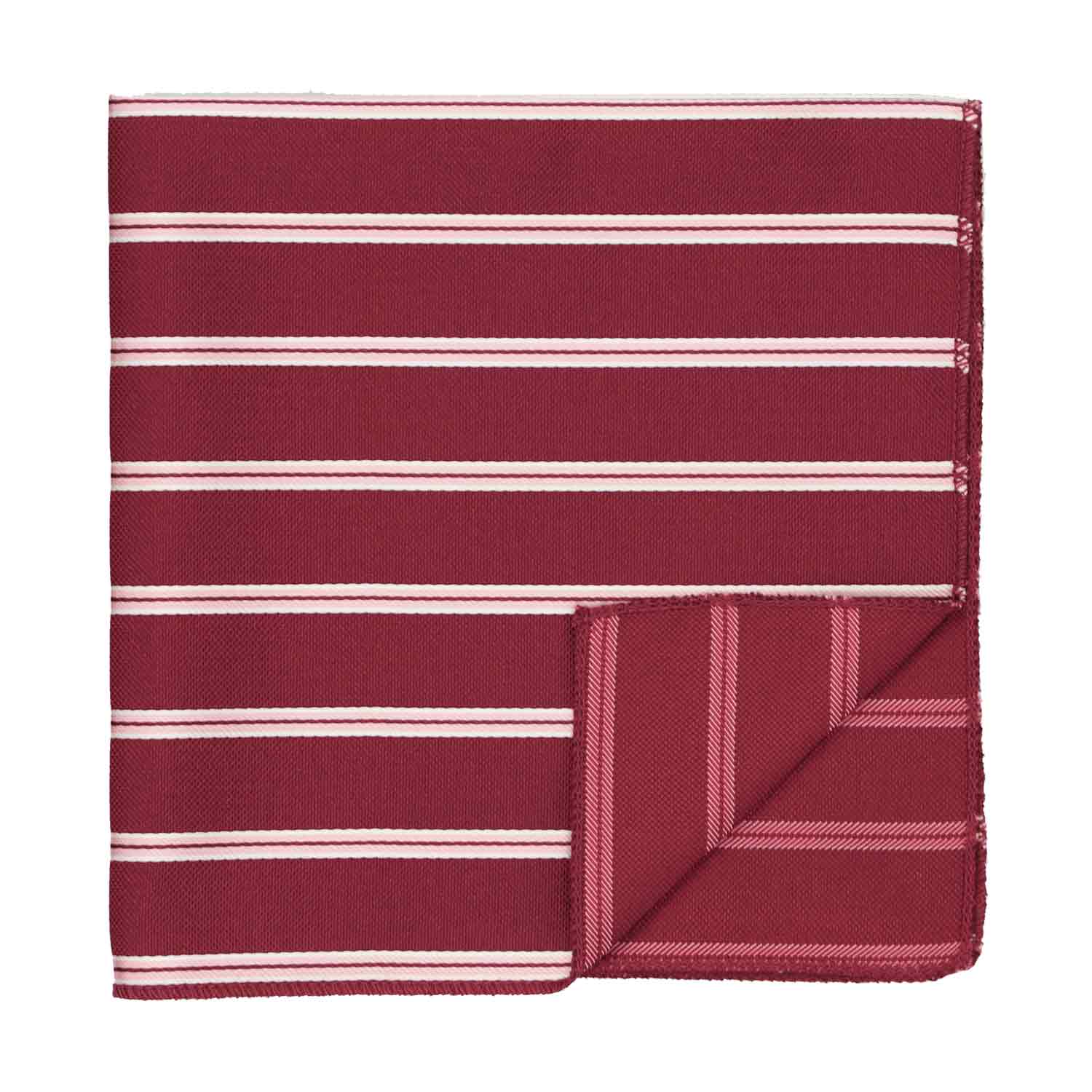 Elevate your formal ensemble or add a refined touch to your everyday style with a pocket square. Designed to complement your tie, this burgundy striped pocket square enhances any outfit with its sophisticated color palette. It features a stylish pencil stripe pattern in light coral, burgundy, and white, adding a subtle yet elegant contrast. Crafted with a one-sided design and neatly finished edges, this pocket square offers both quality and style, making it a perfect accessory for any occasion.