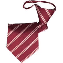 This burgundy striped zipper tie offers a stylish and hassle-free alternative to a traditional necktie. Featuring a refined pencil stripe pattern in light coral, burgundy, and white, it adds a sophisticated yet modern touch to any outfit. The pre-tied design with a convenient zipper mechanism ensures a perfect knot every time—just zip up and go! Whether you're dressing for the office, a wedding, or a formal event, this versatile tie makes looking sharp easier than ever.