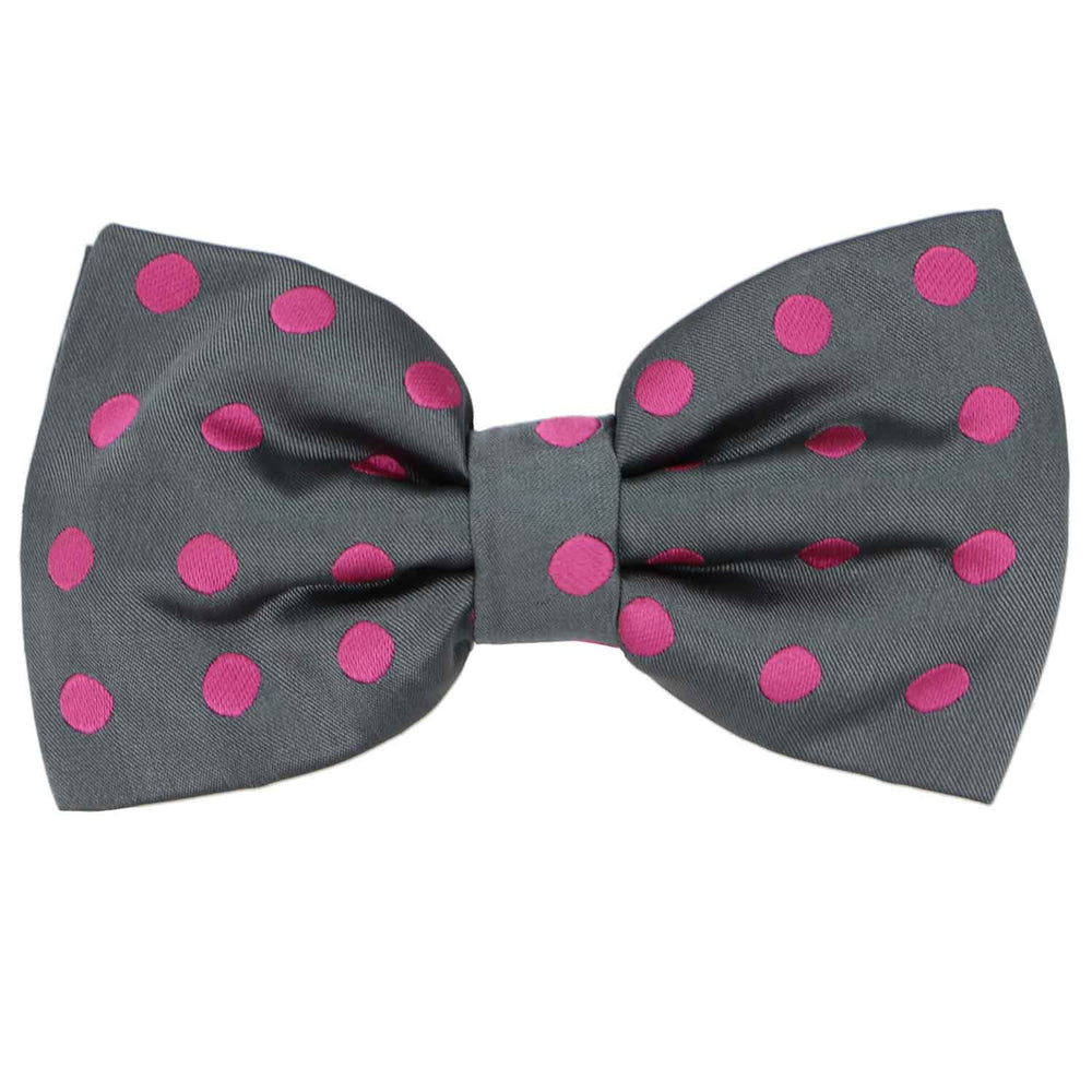 Give your outfit a sophisticated hint of color with this dark gray and light fuchsia polka dot bow tie. Wear it to the office with gray slacks and a button down or dress it up with a fitted charcoal suit for Easter Sunday. For a trendy look, try it with skinny suspenders and chinos.