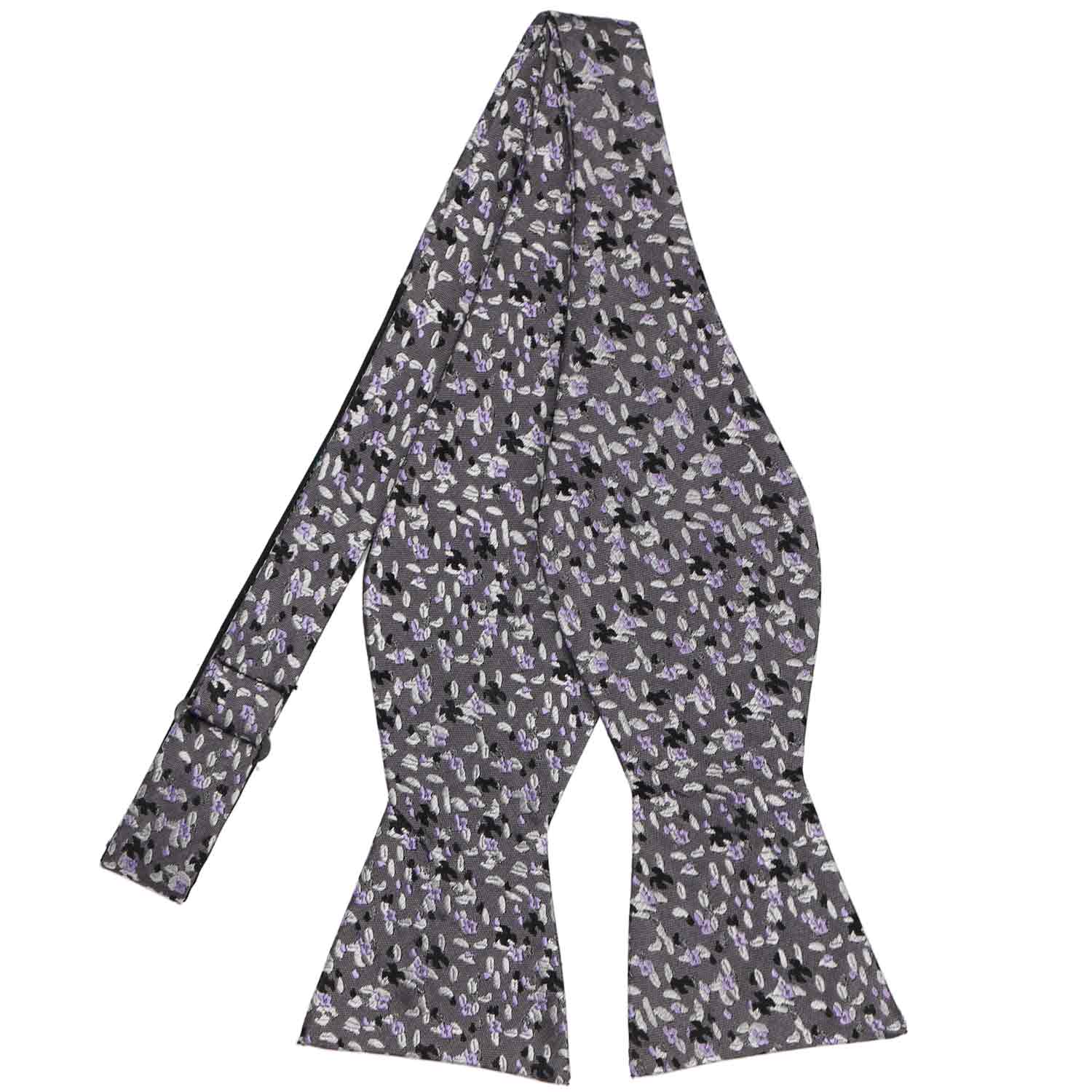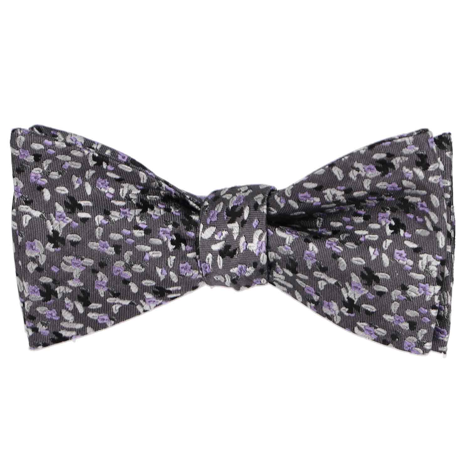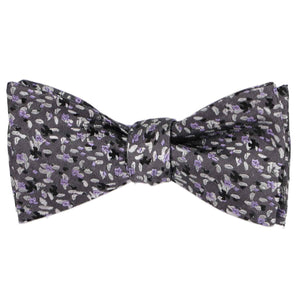 Dark Gray and Lavender Courier Grain Pattern Silk Self-Tie Bow Tie