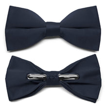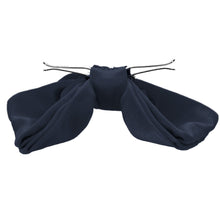 Wear a perfect bow every time with this dark navy blue clip-on bow tie. This pre-tied bow tie features a heavyweight clip that discretely attaches to either side of your shirt collar material for a secure fit. One size fits all, regardless of neck size. Has a soft, satin finish. Add a matching dark navy blue pocket square for a refined look.