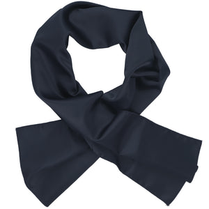 We designed this dark navy blue scarf for ladies' uniform wear so you can easily coordinate your group or staff. This professional scarf is made from a single layer of lightweight polyester. This scarf is being worn in corporate environments, trade shows and by choirs.