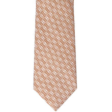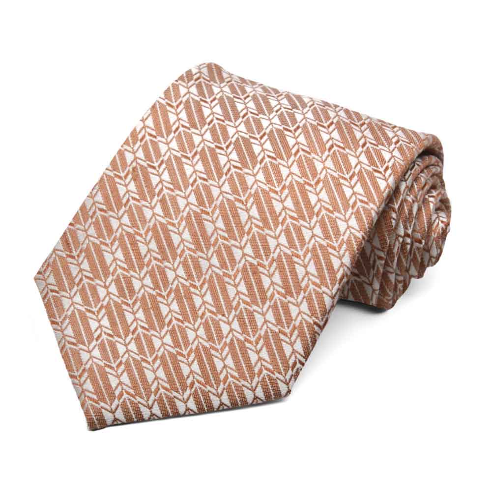 Timeless and elegant. This unique men’s tie features a white geometric design on a dark orange background. Upgrade your fall wardrobe when you wear it with khaki or brown slacks. Or, dress it up with your choice of suit color. It goes with just about anything.