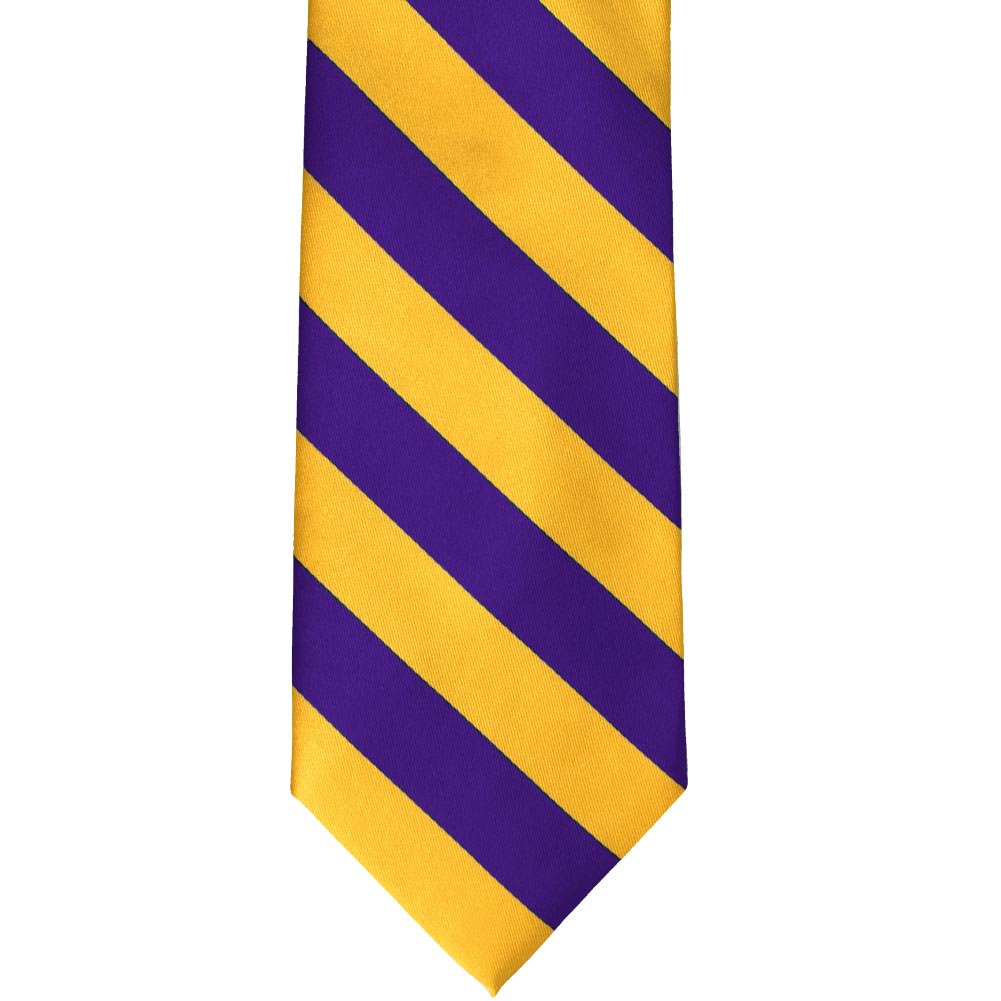 These contrasting dark purple and golden yellow stripes are perfect for school uniforms or sleek everyday attire. Wear it to promote school spirit, or just to show off your keen sense of style. Pair it with the matching pocket square and your formal attire is complete!