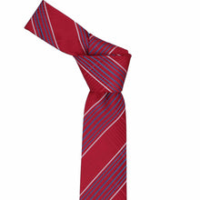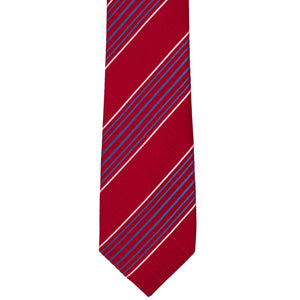 Show your patriotic pride with this slim dark red plaid tie! The rich red base is accented with classic blue and white stripes, evoking the colors of the American flag. Perfect for the office, a business lunch, or a dressy Fourth of July celebration, this tie is as versatile as it is stylish. Pair it with a navy blue suit or a sharp shirt-and-slacks combo to create a dashing look that's ready for any occasion.