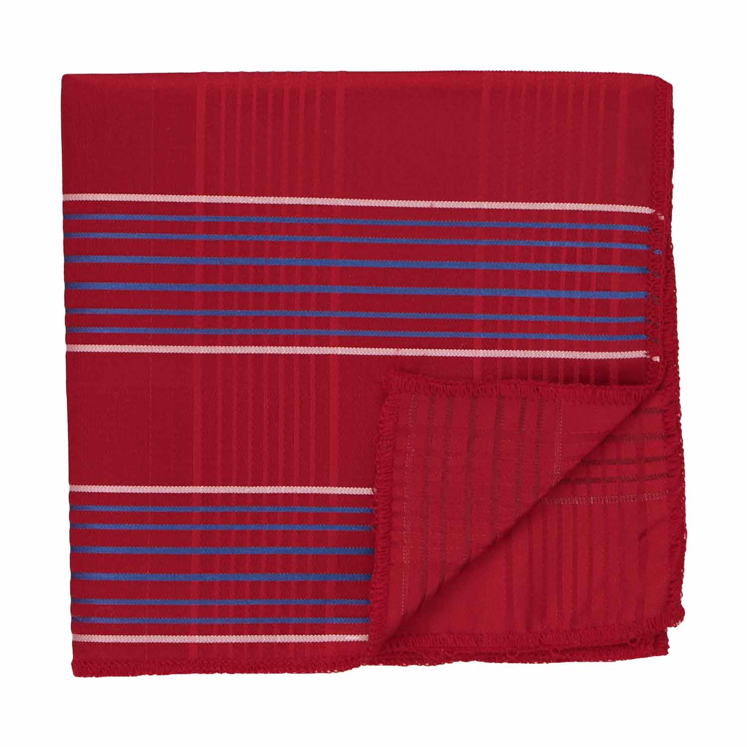 Rich in character and style, this dark red plaid pocket square is a standout accessory for any occasion. Subtle blue and white accents give it a hint of patriotism, making it a sharp choice for a dressy Fourth of July event or a polished office look. Pair it with a navy blue suit for a classic, refined ensemble, or dress it down with a crisp button-down and slacks for a business lunch. However you wear it, this pocket square adds a touch of sophistication to your wardrobe.