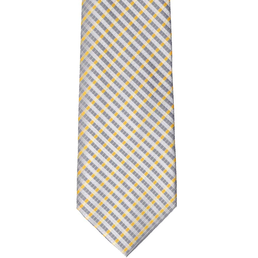 This is a tie you'll find yourself reaching for time and time again! This extra long silver gingham-inspired necktie was designed for versatility and timeless appeal. Subtle hints of yellow woven into the pattern add personality and just the right amount of color to this otherwise monochromatic design. Perfect for both casual and formal settings, it pairs with dark gray, navy, or black suits for special occasions. For your daily 9-to-5, it works just as well with light or dark gray slacks.