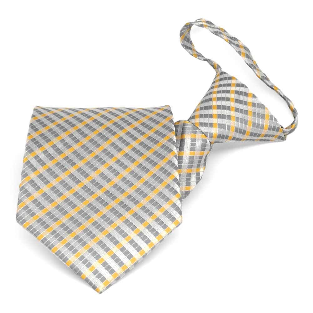 Upgrade your wardrobe with this versatile silver gingham-pattern zipper tie, designed to take you from casual to formal with ease. Subtle hints of yellow add just the right touch of personality and color to this timeless design. Whether you're dressing up in a dark gray, navy, or black suit for a formal event or keeping it sharp with light or dark gray slacks for the office, this tie is an effortless go-to. Plus, with its convenient pre-tied zipper design, you’ll have a perfect knot every time—making it as practical as it is stylish.