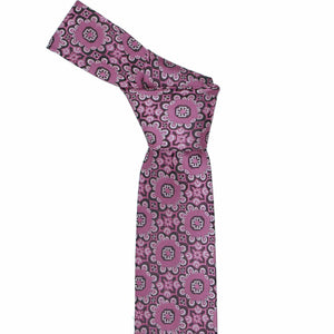 Don't put your pink accessories away for the winter—add this slim tie to your collection and stay cozy and stylish all season long! Tie it on and watch as the rich magenta color adds warmth to your attire and your mood. The abstract floral pattern will certainly turn heads at the office, too. Wear it with almost any color of suit, from classic black to something more creative like a navy blue blazer.