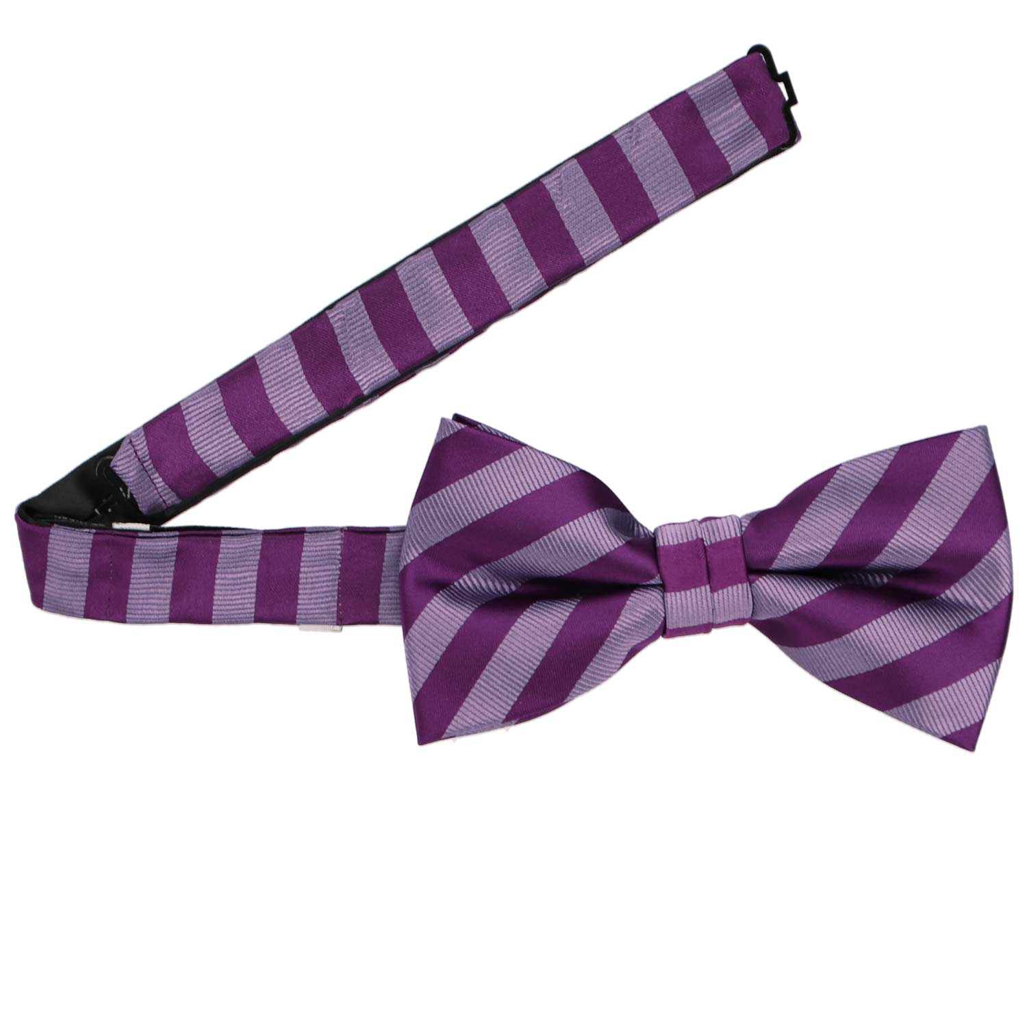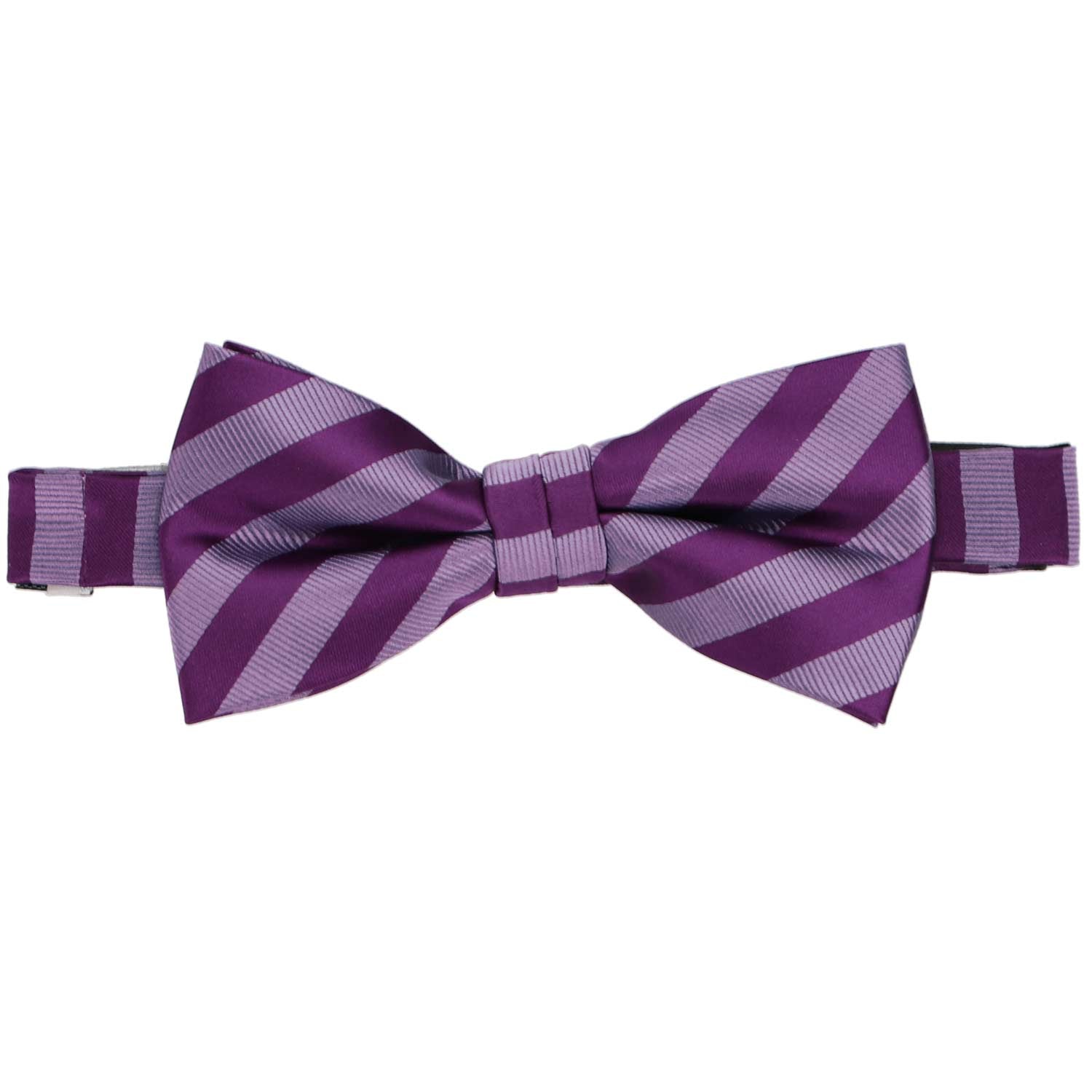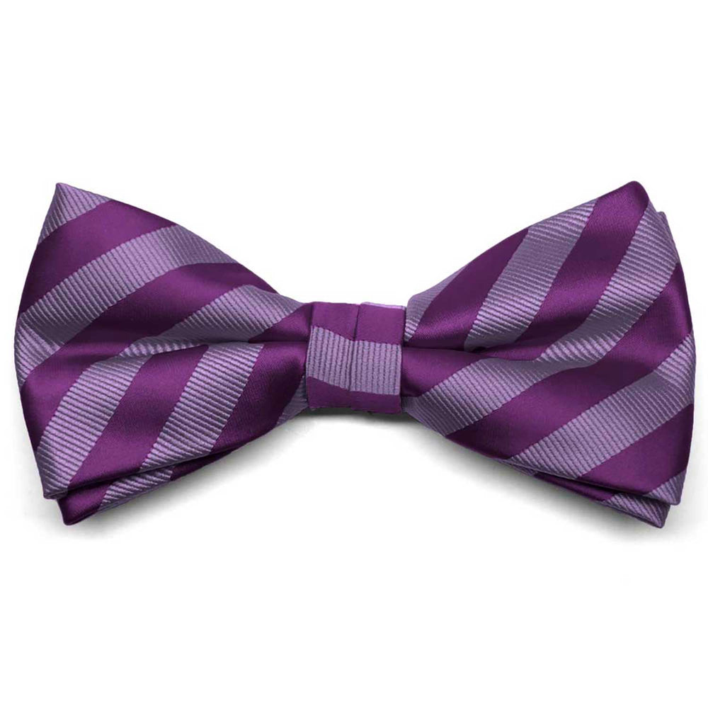 This deep wisteria striped bow tie will add that "something special" to your groomsmen's outfits. The light and dark wisteria shades coordinate with a range of dusty purples, so it's easy to match your wedding colors. We kept the alternating satin and ribbed stripes narrow at 0.375 inches for just the right amount of pop. Complete their look with the matching pocket squares, sold separately.