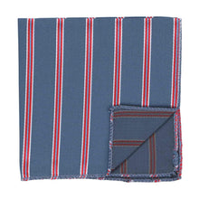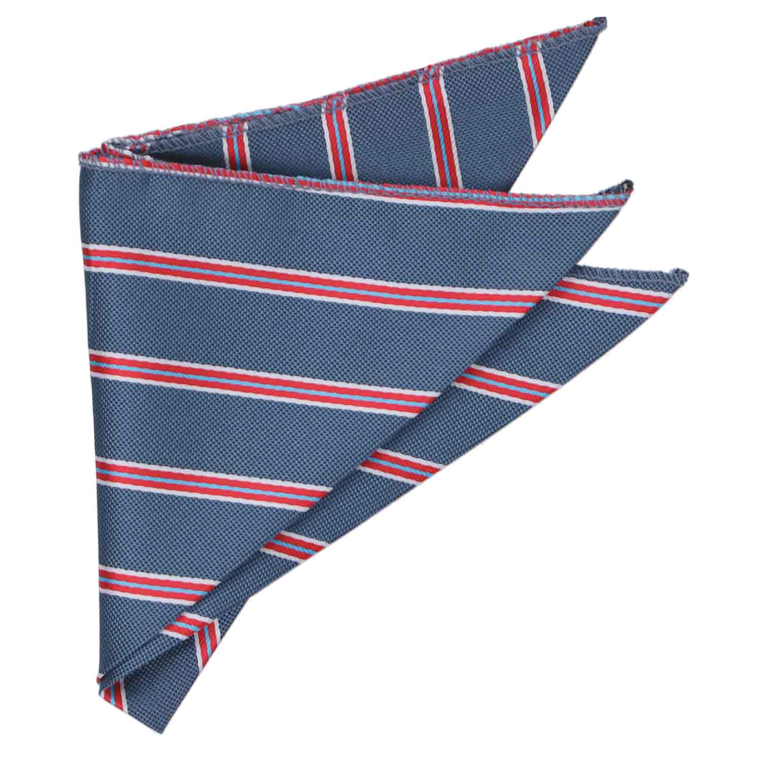 This denim blue striped pocket square adds a touch of modern sophistication to any ensemble. Accented with a sleek pencil stripe pattern in red, light blue, and white, it offers a subtle yet stylish contrast. When paired with the matching tie or bow tie, this versatile accessory is perfect for weddings, business occasions, or effortlessly polished everyday looks.