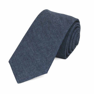 This tie is a slim width at 2.5-inches wide. It's not our skinniest size, but it's more modern than a traditional-width necktie. (The length suits most men.) Just like a great pair of jeans, we made this tie from all cotton. The finish is matte, so there's no shine, and it has a soft feel.