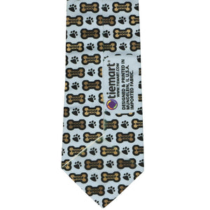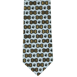 Bone appétit! This is the ultimutt tie for a veterinarian or anyone who loves dogs. The novelty design is pawsome. We combined a dog treat (in various shades of brown) with a pawprint to create this fun tie. So that the pattern pops, we kept the background color a light blue. Try wearing it with a suit or under a lab coat.