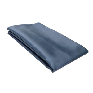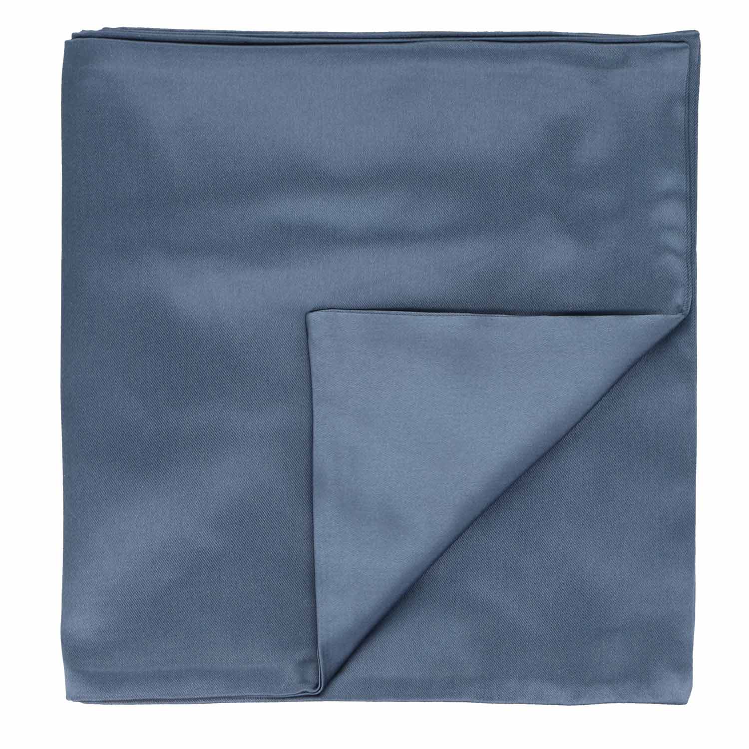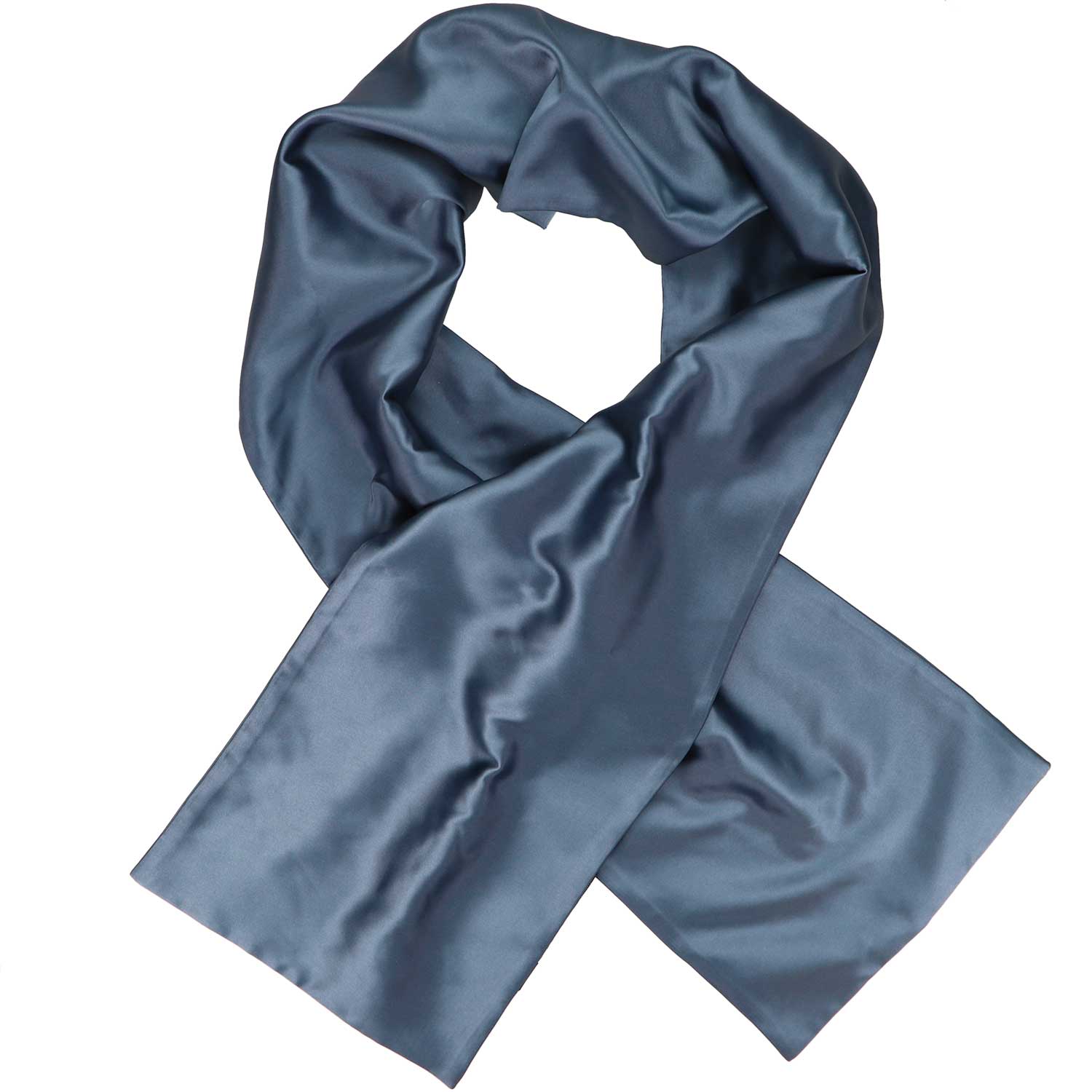 This is a double layer, two-sided scarf. We made it in a generous, 9.5-inch by 65-inch size. The material is identical to our men's dusty blue ties, which means it's a heavyweight, durable fabric that's finished with a not-too-shiny sheen.