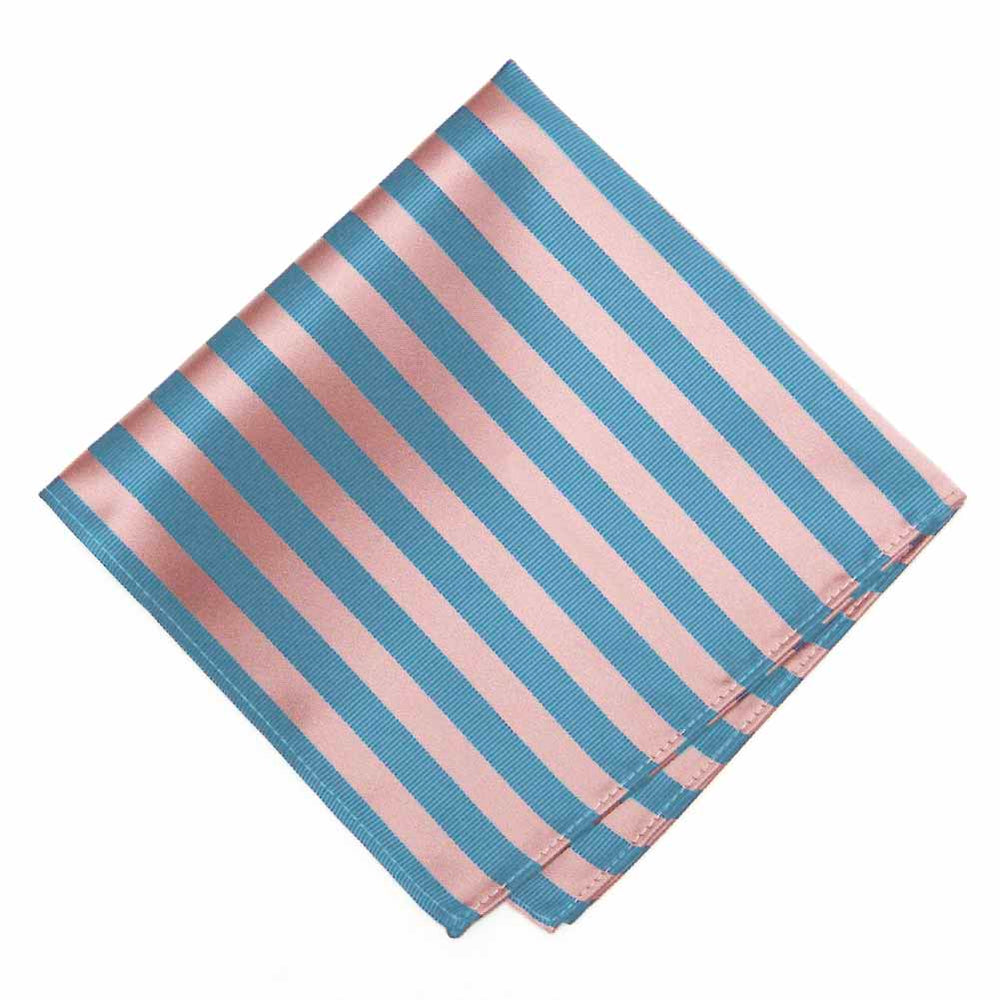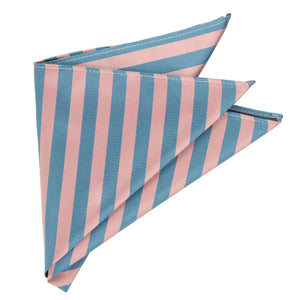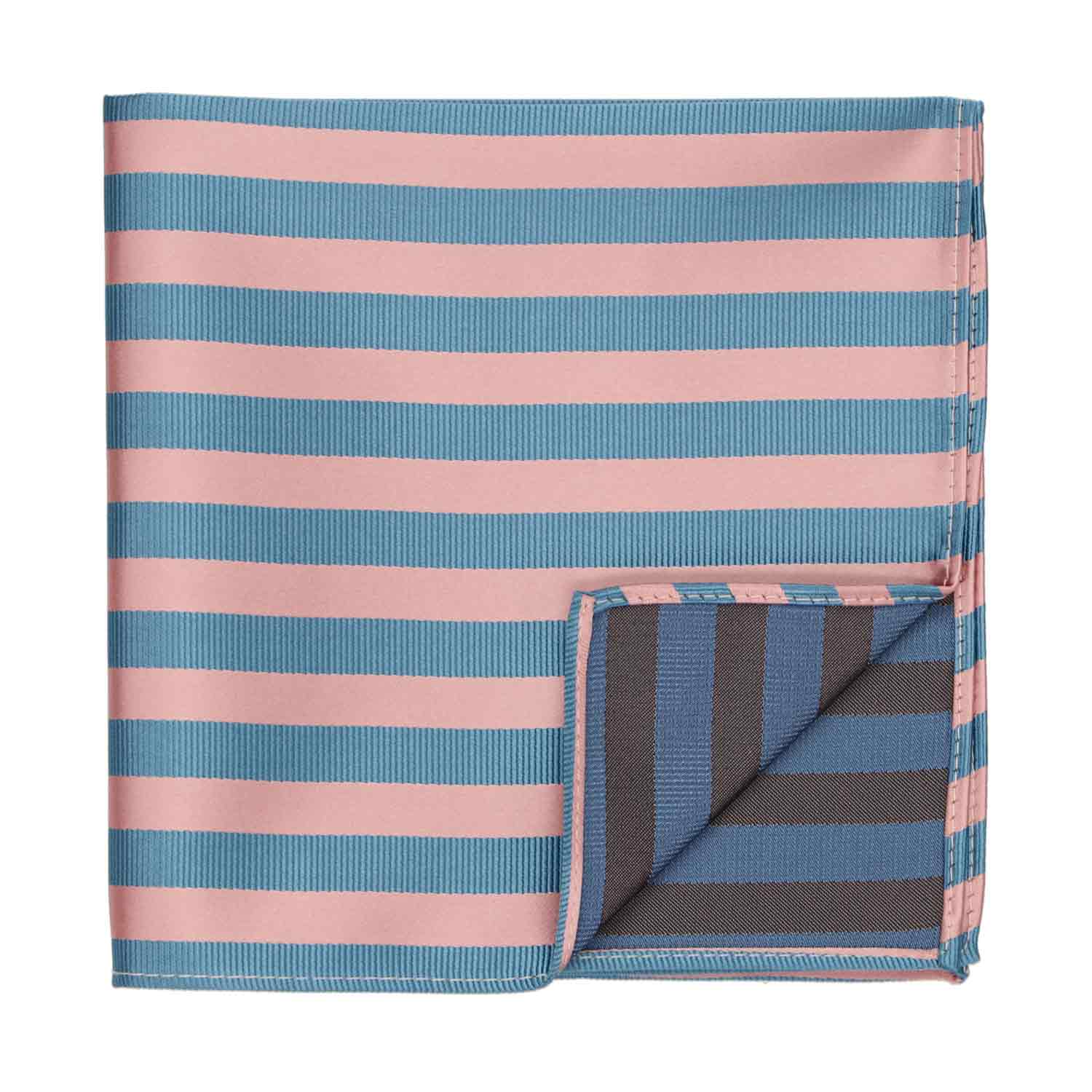 This dusty pink and blue striped pocket square is eye-catching without being too bold. It features alternating satin and ribbed stripes that are just the right width. Perfect for formal events like weddings and Prom, but try it for adding color to your everyday attire, as well. Wear it alone, with a solid color tie, or add the matching necktie or bow tie (sold separately).