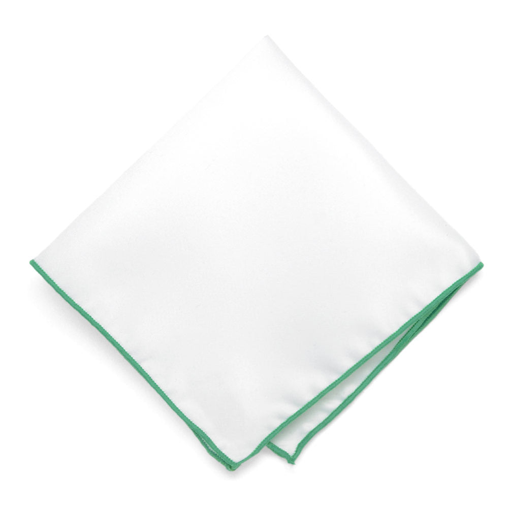 This modern pocket square will add the perfect amount of color to your look. It's solid white but color is added through emerald green stitching along the edges. Fold it so those edges are exposed (we recommend a straight fold) and pair it with a matching or contrasting tie.
