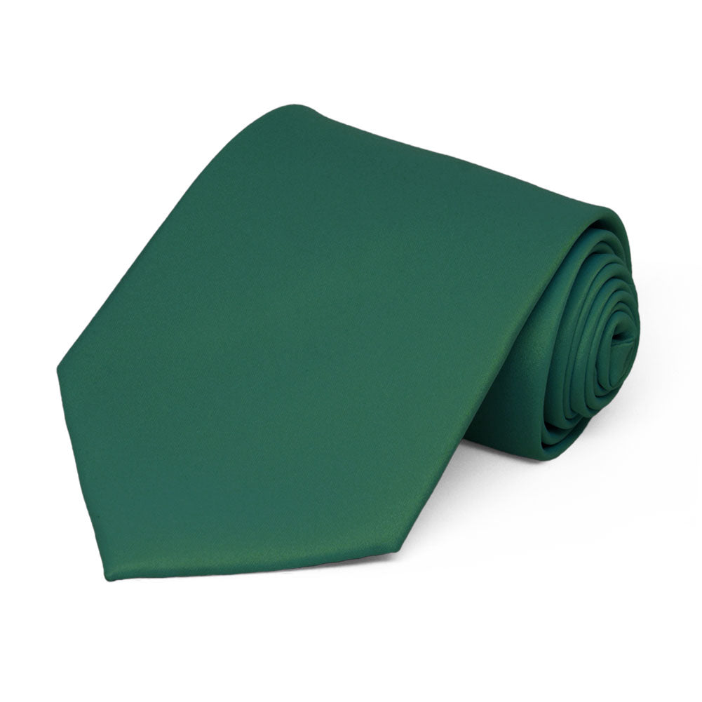 The 3.25-inch width complements both men and women and the 58-inch length is standard sized to fit most adults. These evergreen ties are made from a durable, all polyester material with a very light satin finish. (It's not shiny, but it's not a matte tie either.) Your group or staff will look professional and put together in this one. The color is a dark green.