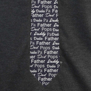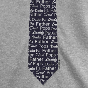 When it's time to unwind and take off that tie, let Dad relax in this necktie t-shirt instead. The comfy tee features a necktie design that's covered in his many names: Dad. Daddy. Pops. Dada. Papa. Father. Pa. Whatever you call him, this necktie t-shirt is the perfect Father's Day gift. Choose from your choice of a light or dark heather gray.
