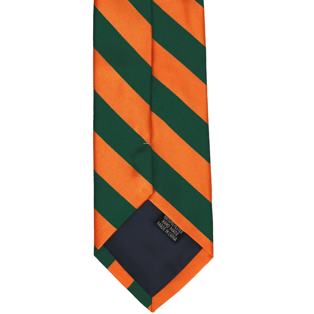 One of our most popular striped tie combos, now in an extra long length for big and/or tall men. This Florida orange and dark green striped tie features a 63-inch length, 6-inches longer than our standard-sized ties. Made from 100% polyester microfiber. Additional styles and sizes available.