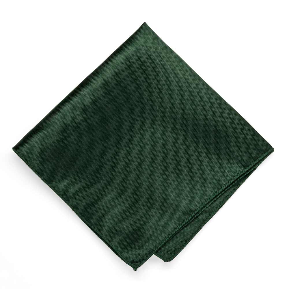 Forest Green Herringbone Silk Pocket Square