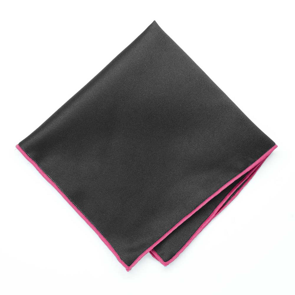 Get ready to score style points with this tipped pocket square. Fuchsia stitching pops along the edges of this black pocket square. Pair it with a matching fuchsia tie or any other bold and bright hue. When it's tucked into your pocket, be sure to fold it in a way that emphasizes those edges.