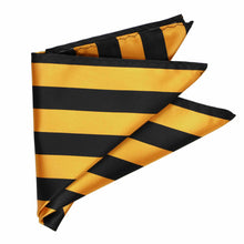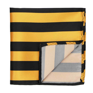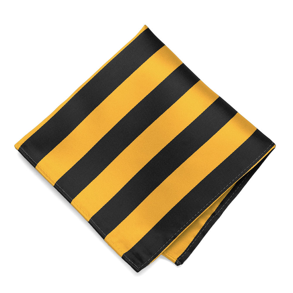 Dress up your look with this golden yellow and black striped pocket square. It's made to match our striped ties (sold separately), so you can be coordinated in school, team or company colors for your next formal event. The larger size means there are plenty of ways to fold this pocket square.