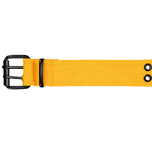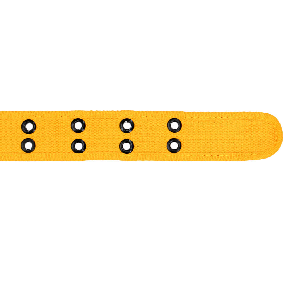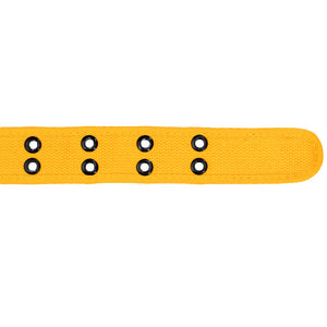 You might not expect this yellow hue on a grommet belt but, wow, is it a crowd pleaser! This golden yellow grommet belt is casual in canvas material. Wear it with jeans and a tee or try it for a dressier outfit, like a golden yellow skinny tie.