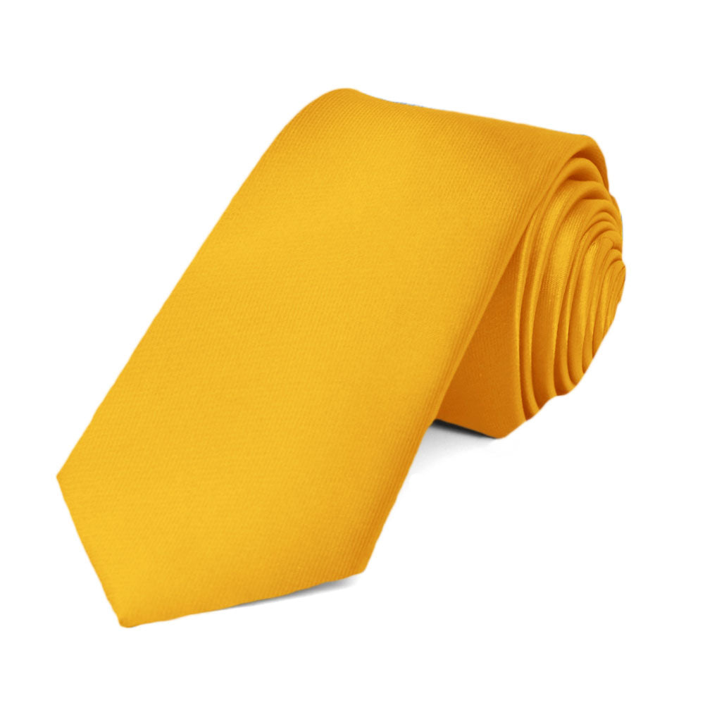 Golden Yellow Slim Solid Color Necktie, 2.5" Width