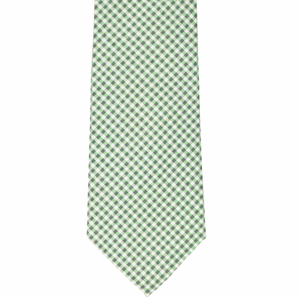 When the temperature starts to rise, this extra long tie is a must-have in your wardrobe. The small-scale gingham pattern is refreshing in shades of green, white and gray. This is a great tie to wear casually with a button down and pair of jeans, or dress it up with a navy blue or gray suit.