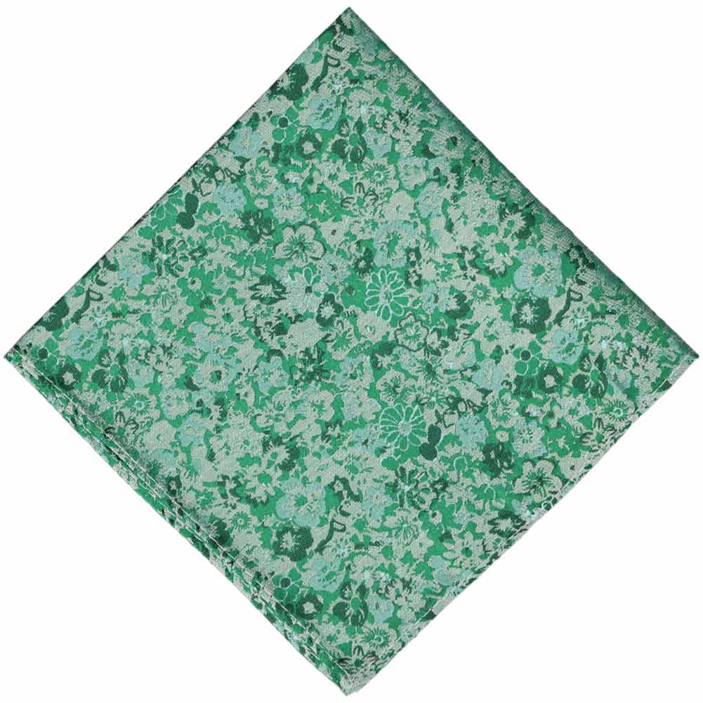 This green pocket square is a fresh and colorful way to complete your groomsmen's outfits. It combines two popular trends in weddings right now: Florals and greens. Despite being trendy, we kept the floral pattern small and low-key for timeless style. Look close and you'll see several shades of green in the pattern, from classic kelly green to emerald, so it will complement a range of wedding colors. For a complete look, pair it with the matching necktie (sold separately) or with the other colors we offer in this pattern.
