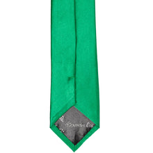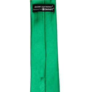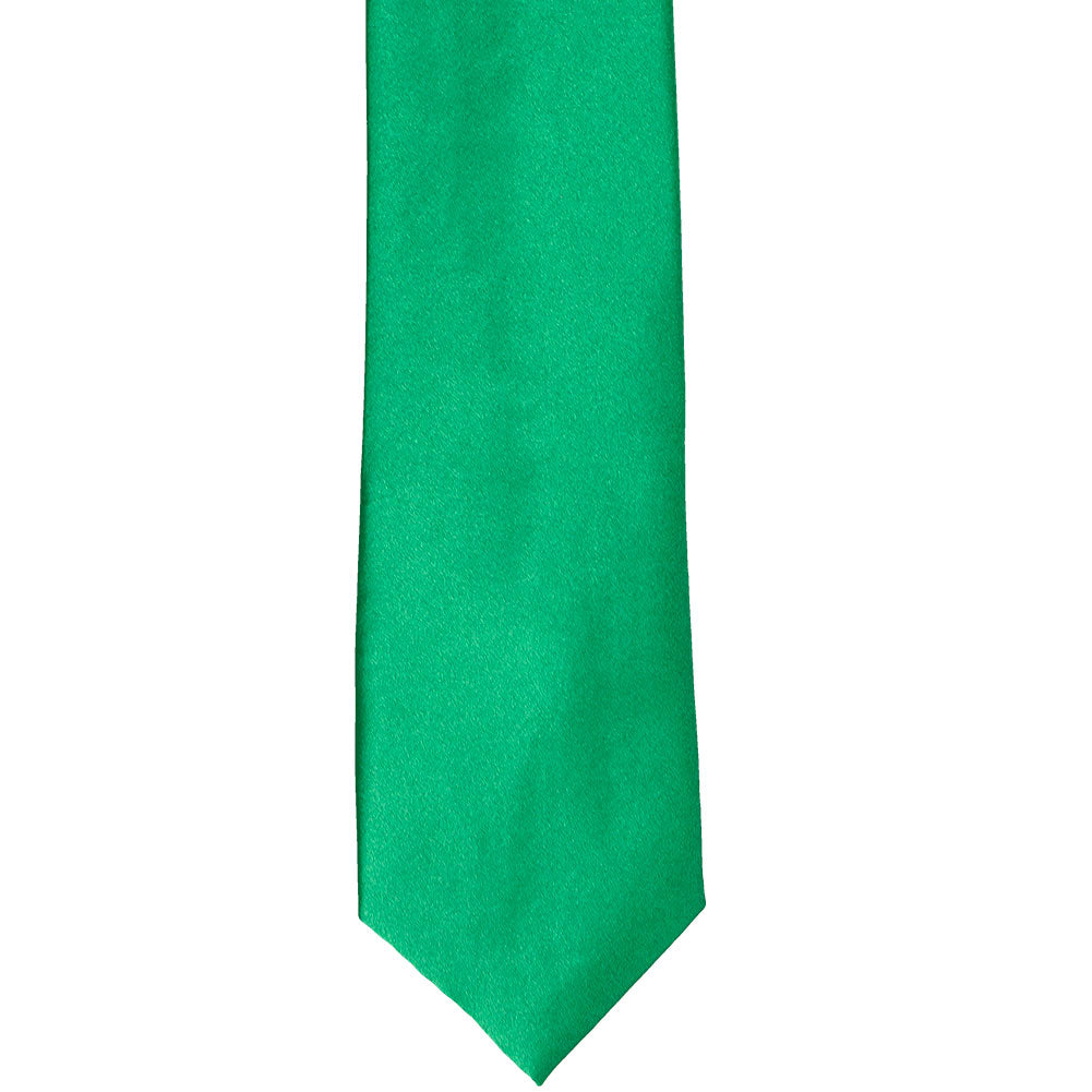 This green slim necktie provides a subtly trendy look without going too skinny. The approximate, 2.5-inch width measures 0.5-inches wider than today's ultra-trendy skinny ties, but about 1-inch skinnier than a traditional men's tie. The in-between width makes it a popular necktie for fashionably outfitting a large group of different-sized men or teens.
