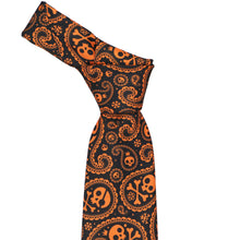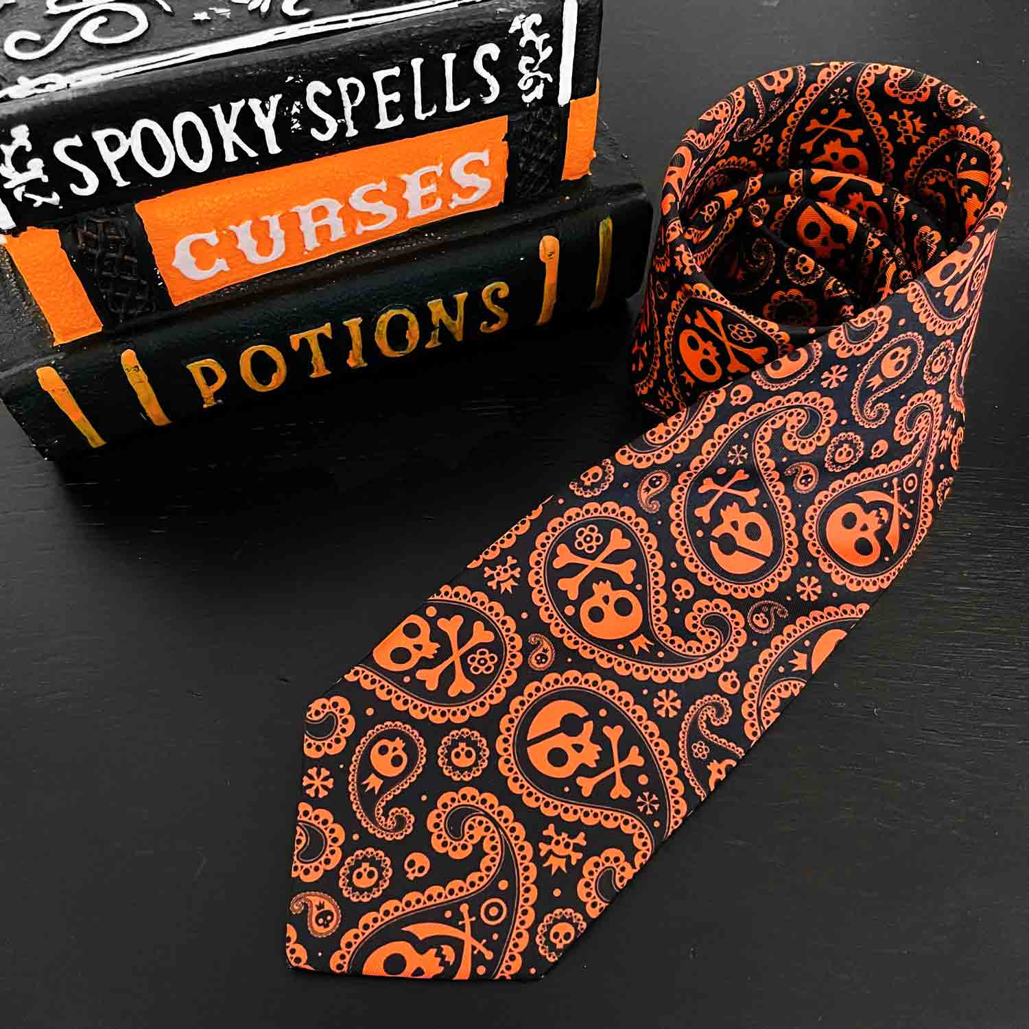 Ghouls, ghosts and goblins will appreciate this Halloween-themed necktie. (We dare you to wear it to work!) The eerily elegant design features a paisley print of skulls and crossbones in seasonal black and orange hues. For a haunting look, pair it with the matching pocket square and a black suit. (Pocket square sold separately.) You'll be the best dressed monster at the mash!