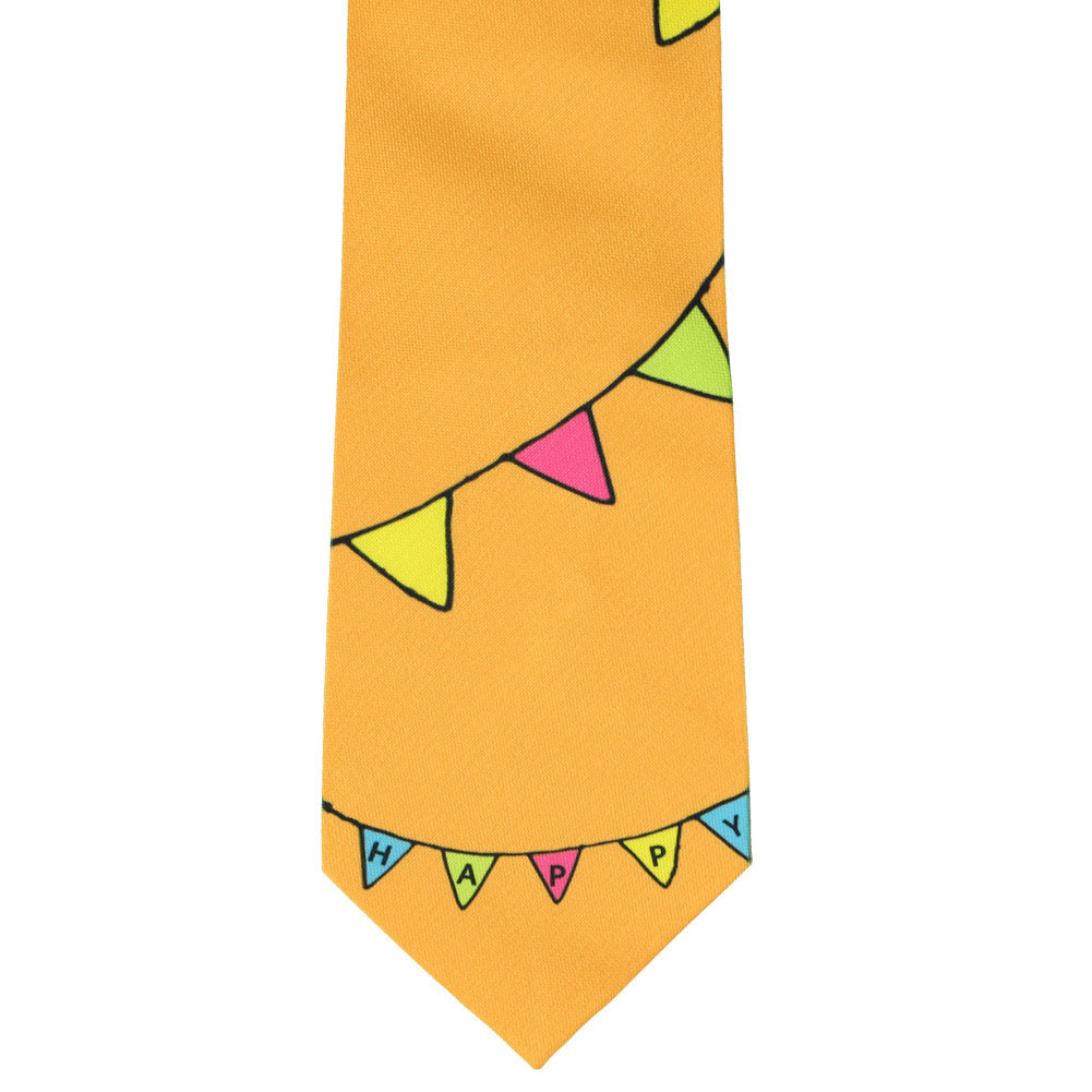 Celebrate the man of the day (or any joyous occasion) in this cool birthday novelty tie. We designed this tie to look like a birthday banner. In fact, the small banner at the tip of the tie reads “HAPPY”. (The large banner that extends up the length of the tie is blank while the back of the tie is the background color only.) Birthdays are a time to party, so we went with funky, bold colors for this tie.
