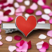 This tie bar measures 2.25-inches wide, so it’s designed for ties 3-inches or wider. Add it to a solid red necktie or a Valentine’s Day novelty tie. Skipping the reds and pinks? No problem, this tie bar looks great with any regular sized tie.