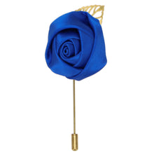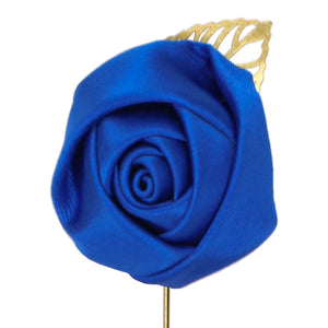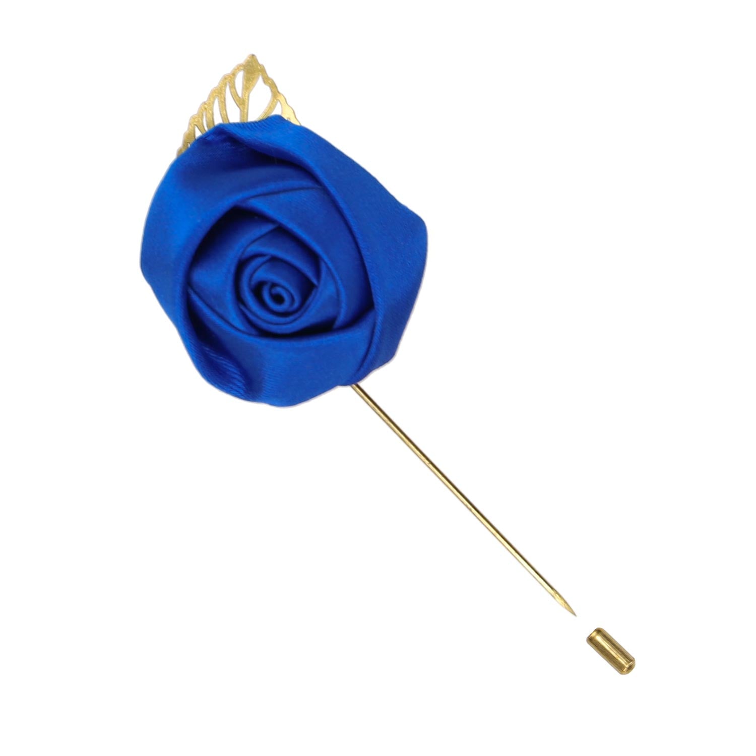 Complete his wedding day look with this horizon blue flower lapel pin. These lapel pins are a budget-friendly alternative to the boutonnière. The floral puff is made from the same material as our premium ties and is accented with a gold-tone leaf. It secures to his jacket, vest or suspenders with a metal pin.