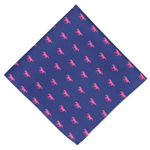 Trot to the derby in style with this horse-themed pocket square. It's the perfect finishing touch accessory for any dress-your-best occasion. The playful pink ponies stand out against the dark blue background, making it a great conversation starter. If you're using this pocket square for formal wear, consider adding the matching necktie to your attire (sold separately).