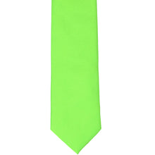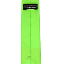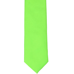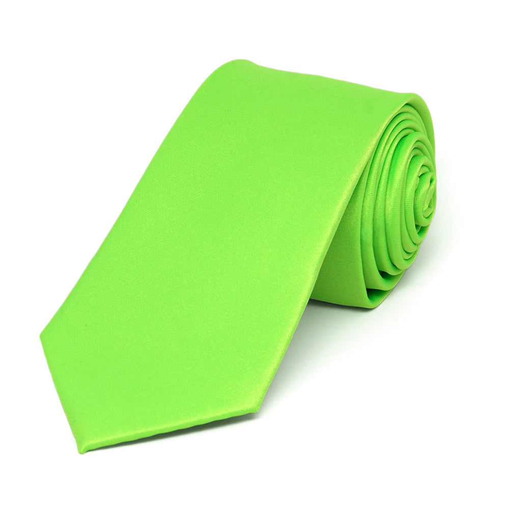 This hot lime green slim necktie provides a subtly trendy look without going too skinny. The 2.5-inch width measures 0.5-inches wider than today's ultra-trendy skinny ties, but about 1-inch skinnier than a traditional men's tie. The in-between width makes it a popular choice for fashionably outfitting a large group of different sized men or teens. Also available in a skinny, 2" and standard, 3.5" tie.