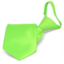 This pre-tied hot lime green zipper tie is an easy alternative to a standard-style necktie. A zipper in the tie tail expands the collar to fit over the head and tighten back to your neck size. Choose from a standard men's 20-inch length or shorter 17-inch length.